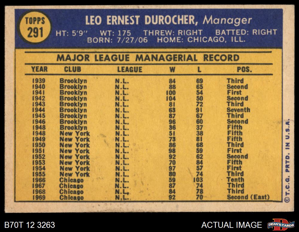 1970 Topps #291 Leo Durocher 4 - VG/EX