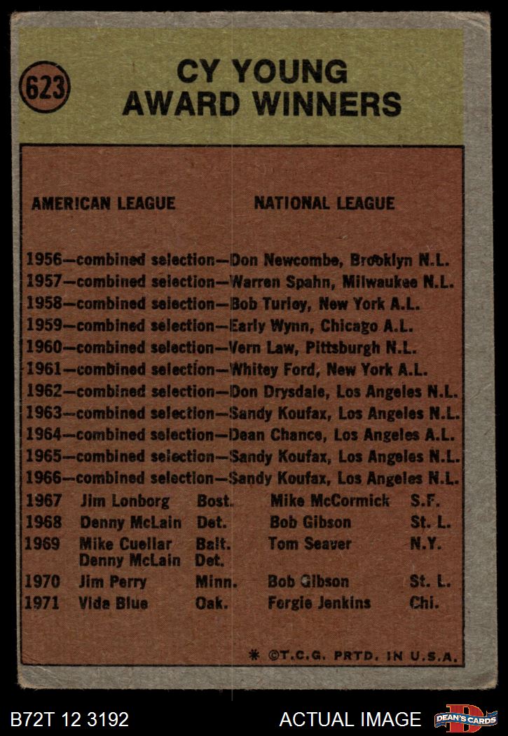 1972 Topps #623 Cy Young Award 1.5 - FAIR