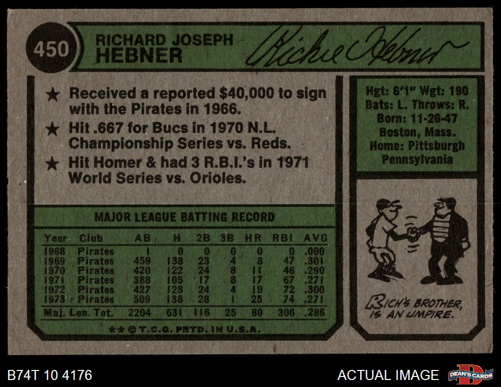1974 Topps #450 Rich Hebner 4 - VG/EX