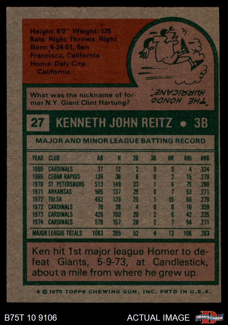 1975 Topps #27 Ken Reitz 3 - VG
