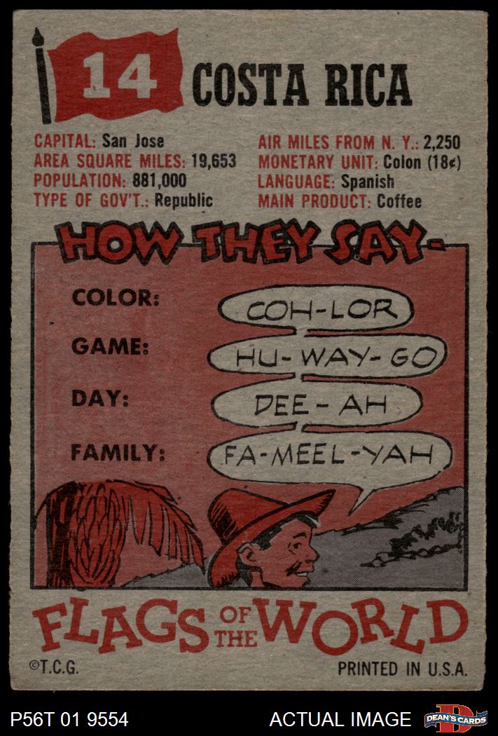 1956 Topps Flags of the World #14 Costa Rica 4 - VG/EX