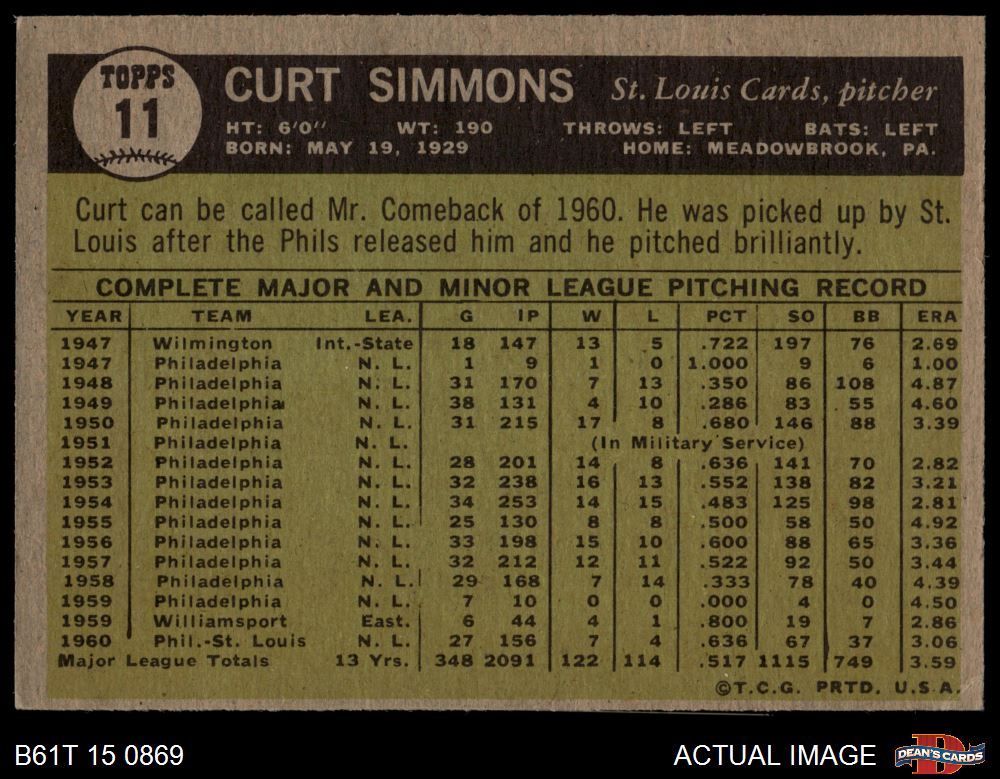 1961 Topps Baseball Cards (10,654 available)1961 Topps Cardinals (750 available)