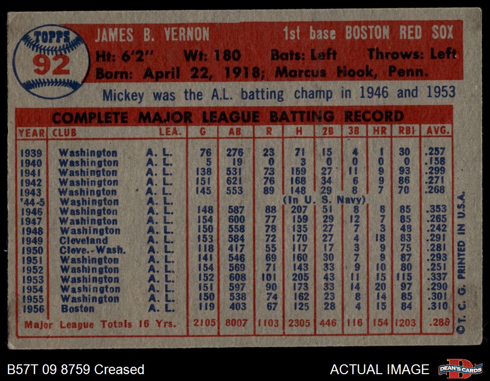 1957 Topps #92 Mickey Vernon 2 - GOOD