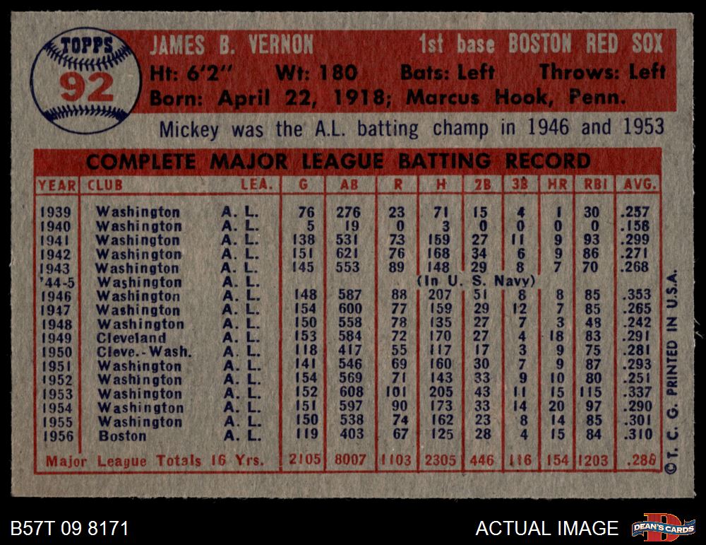 1957 Topps #92 Mickey Vernon 4 - VG/EX