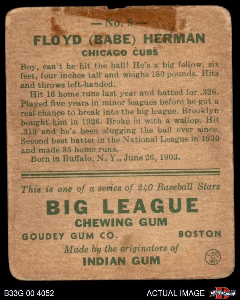 1933 Goudey #5 Babe Herman AUTHENTIC