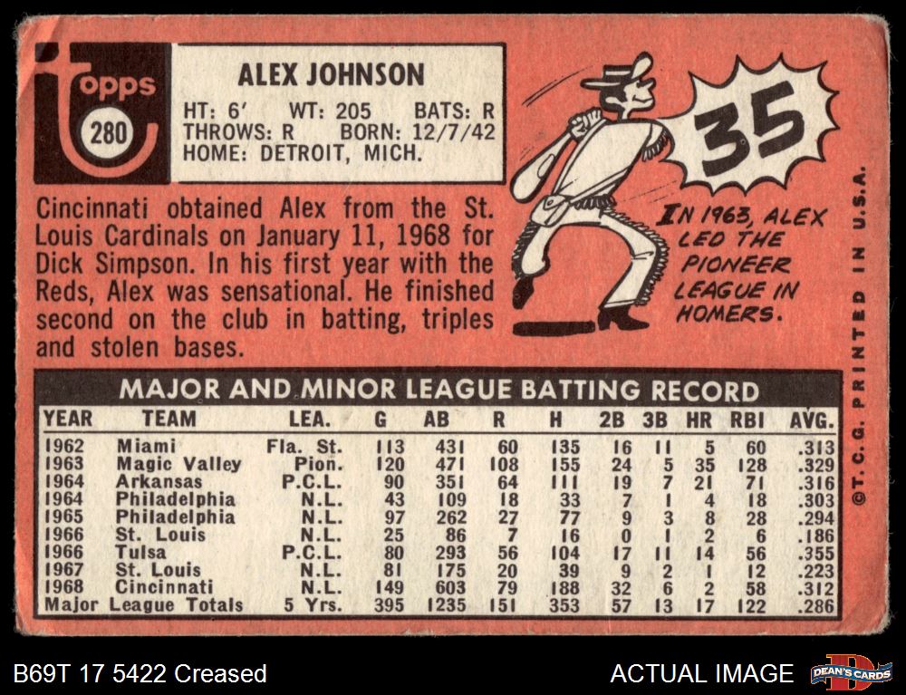 1969 Topps #280 Alex Johnson Front Thumbnail