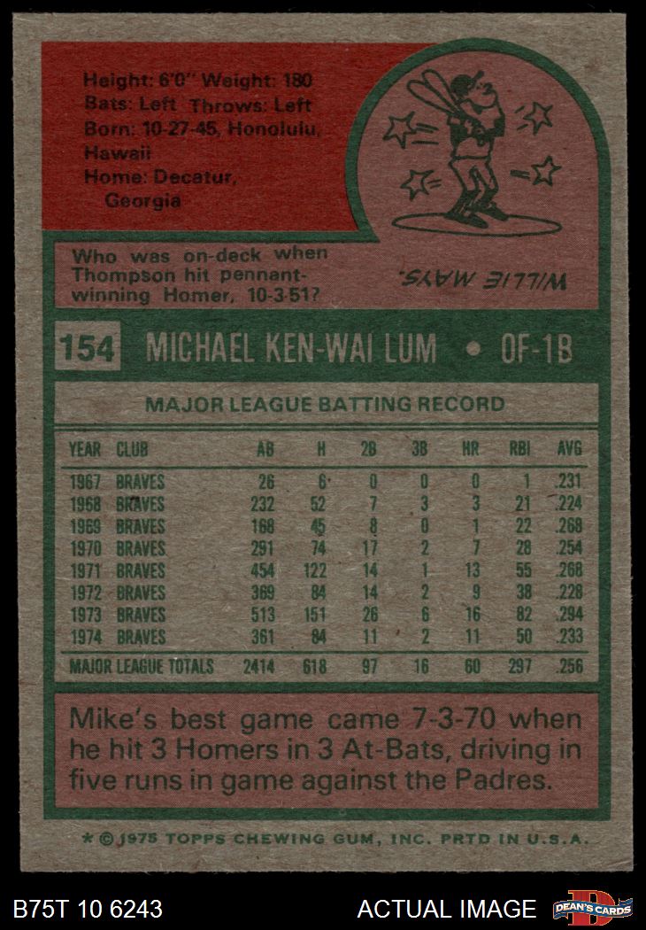 1975 Topps #154 Mike Lum 6 - EX/MT