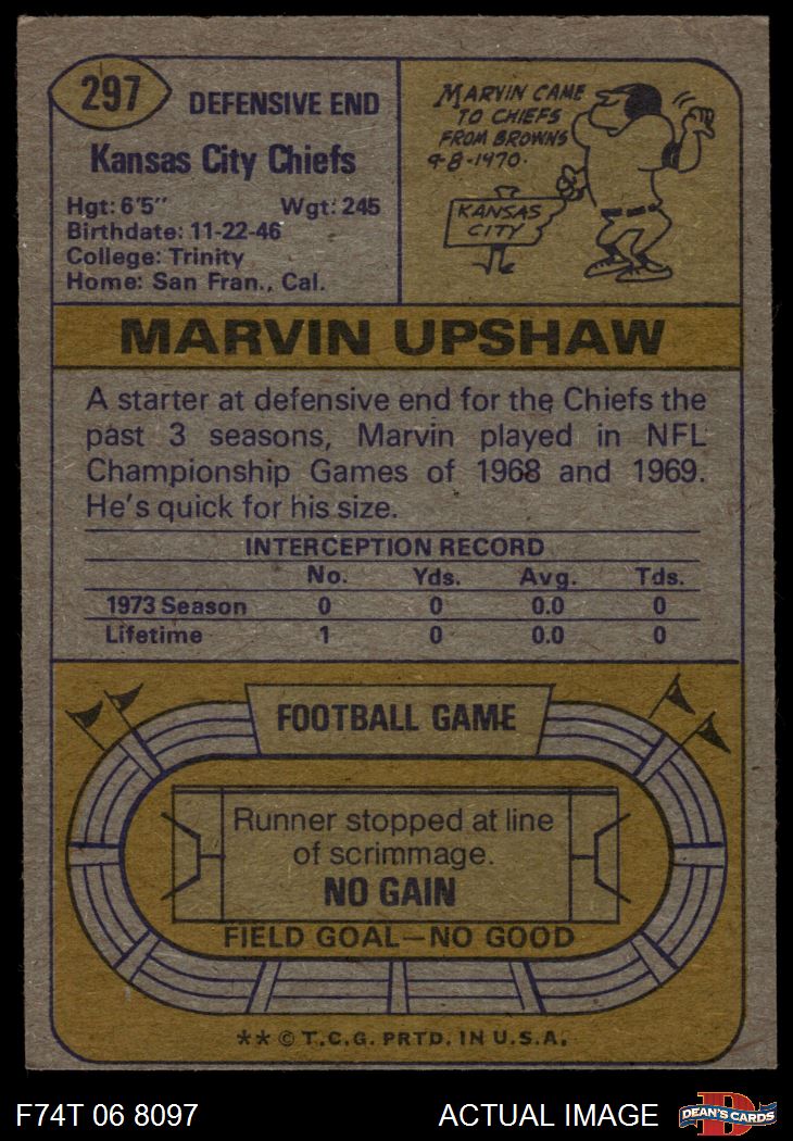 1974 Topps #297 Marvin Upshaw 3 - VG