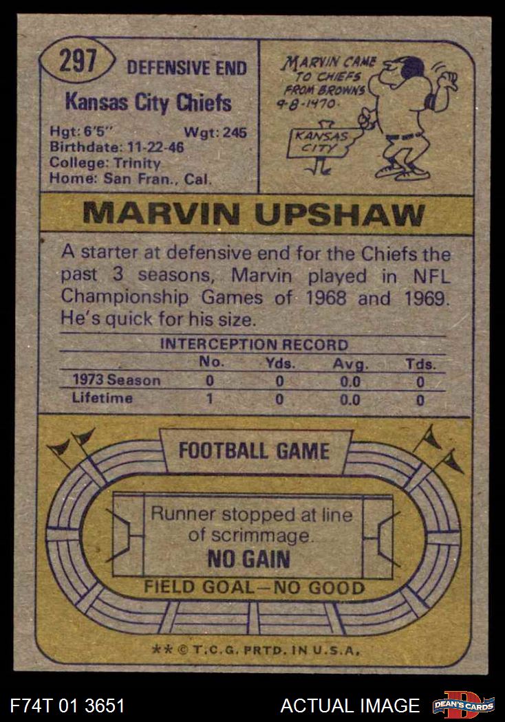 1974 Topps #297 Marvin Upshaw 6 - EX/MT