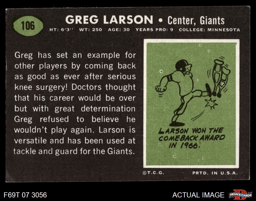 1969 Topps #106 Greg Larson 4 - VG/EX