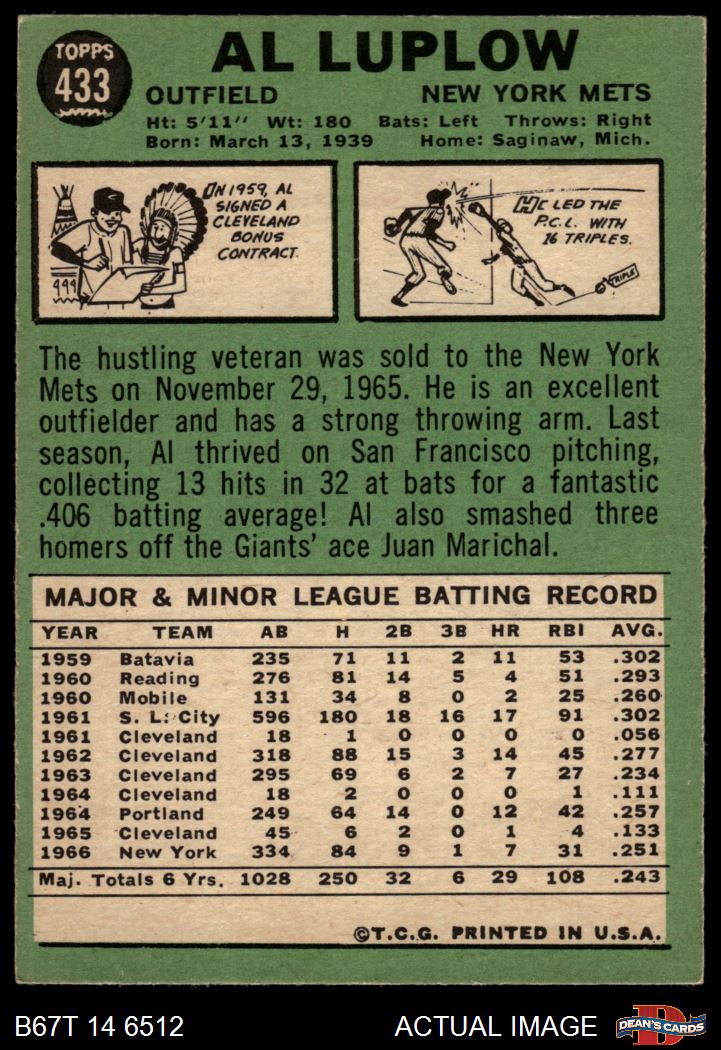 1967 Topps #433 Al Luplow 3 - VG