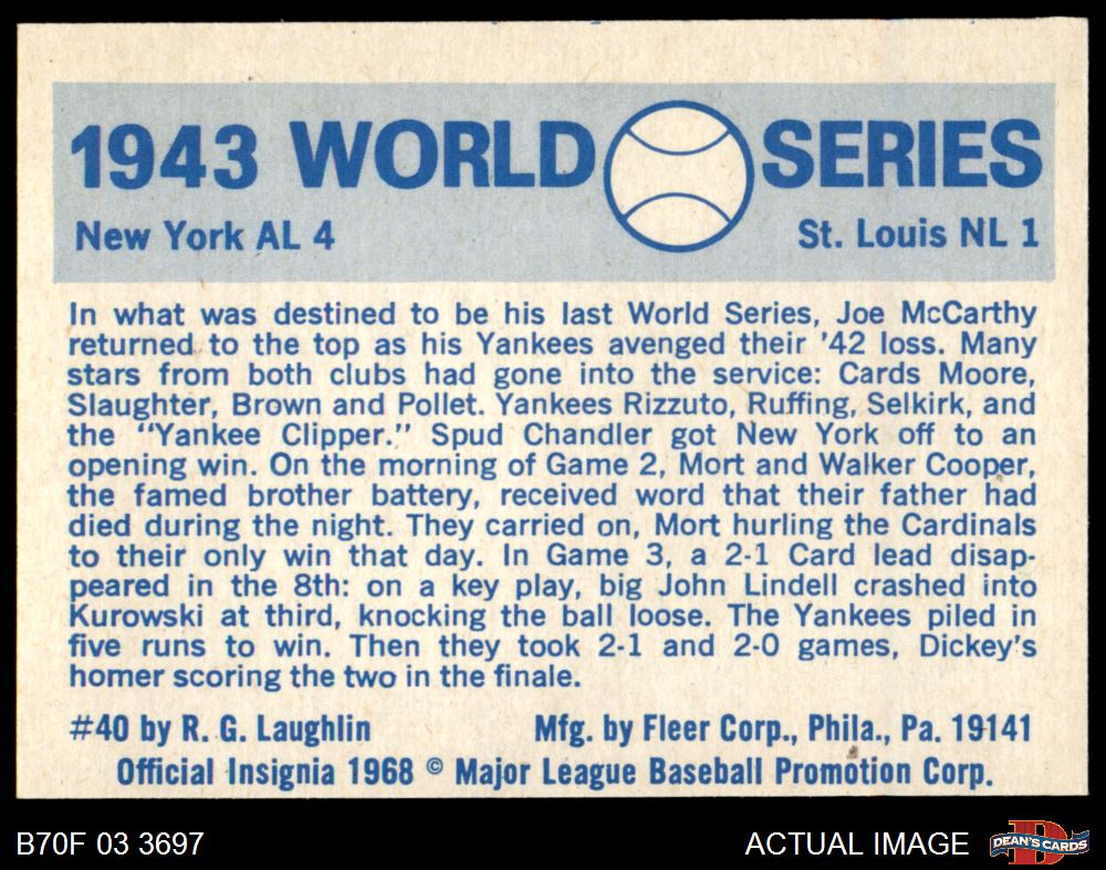 1970 Fleer World Series #40 1943 Yankees vs. Cardinals 5 - EX