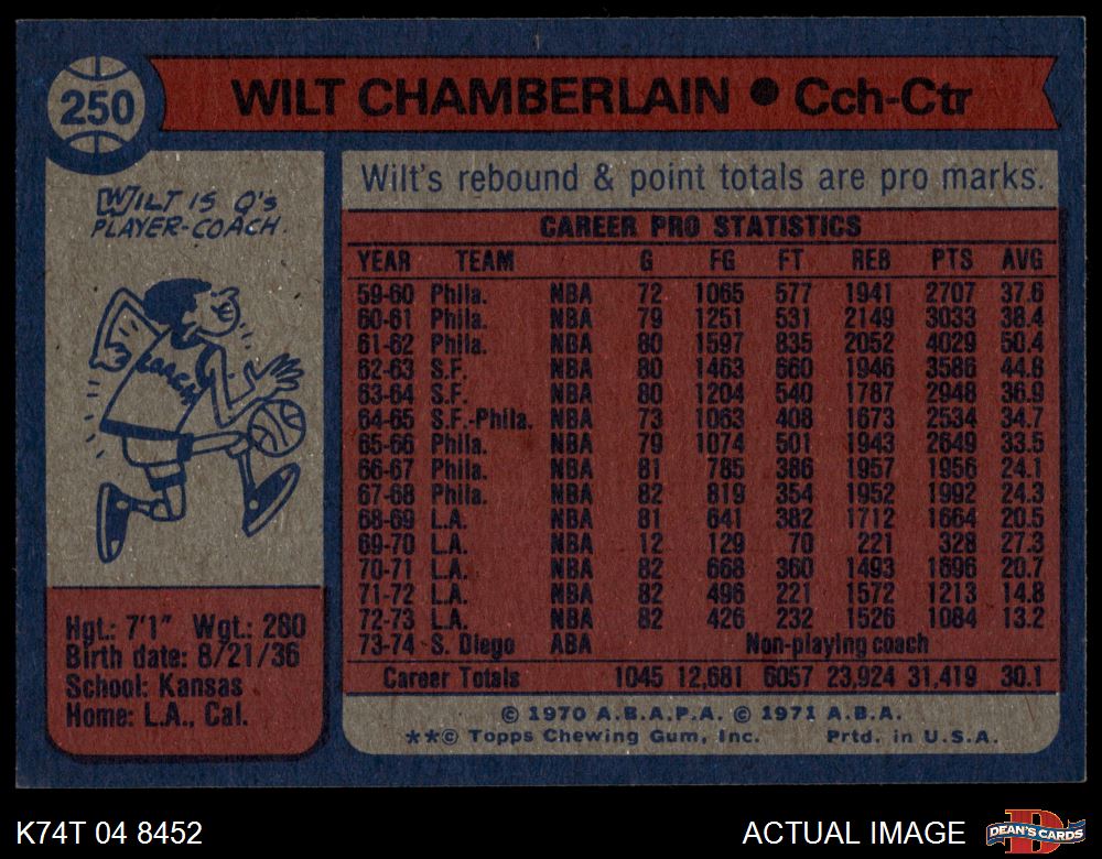 1974 Topps #250 Wilt Chamberlain 6 - EX/MT