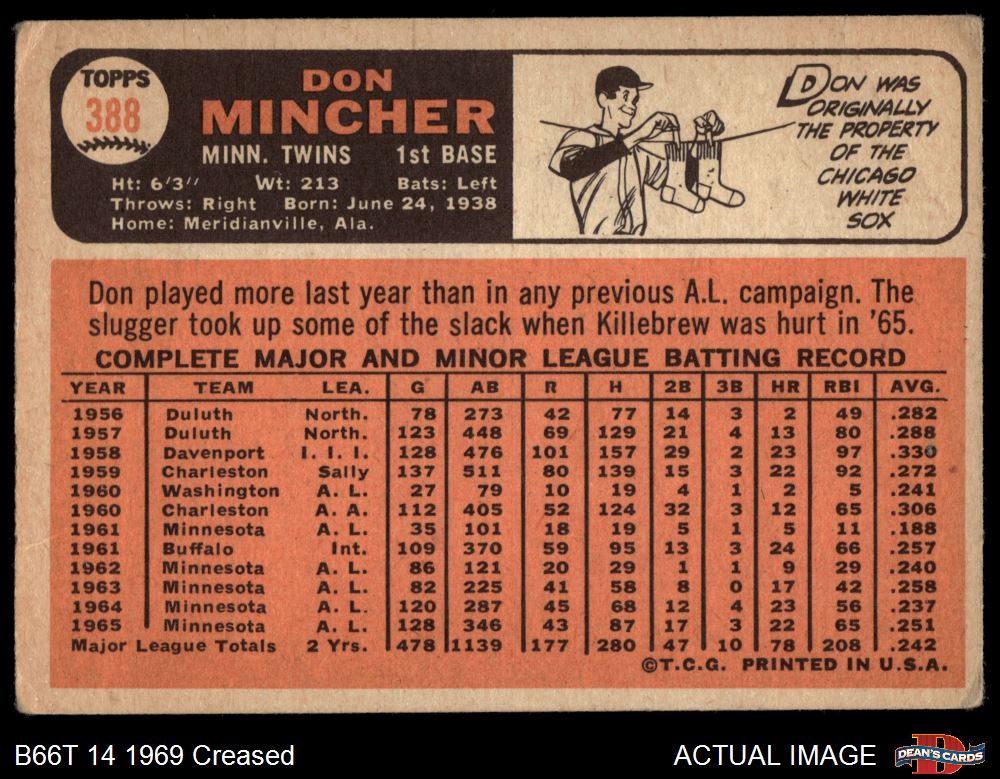 1966 Topps #388 Don Mincher 1 - POOR