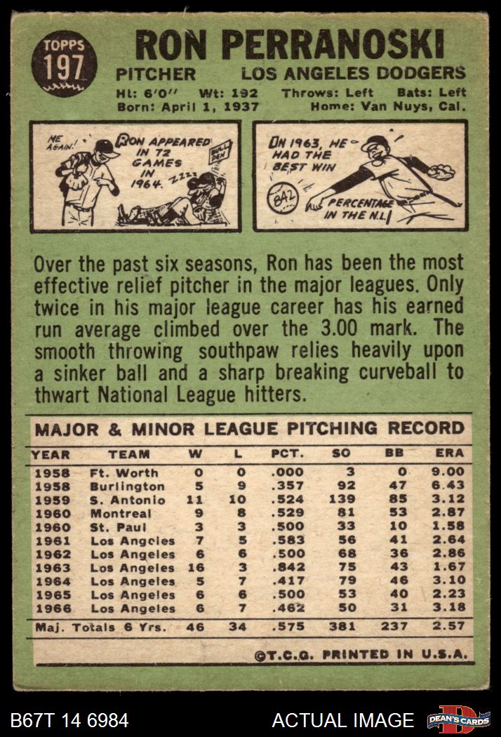 1967 Topps #197 Ron Perranoski 1.5 - FAIR