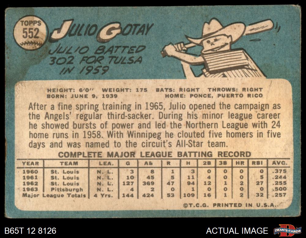 1965 Topps #552 Julio Gotay 1 - POOR