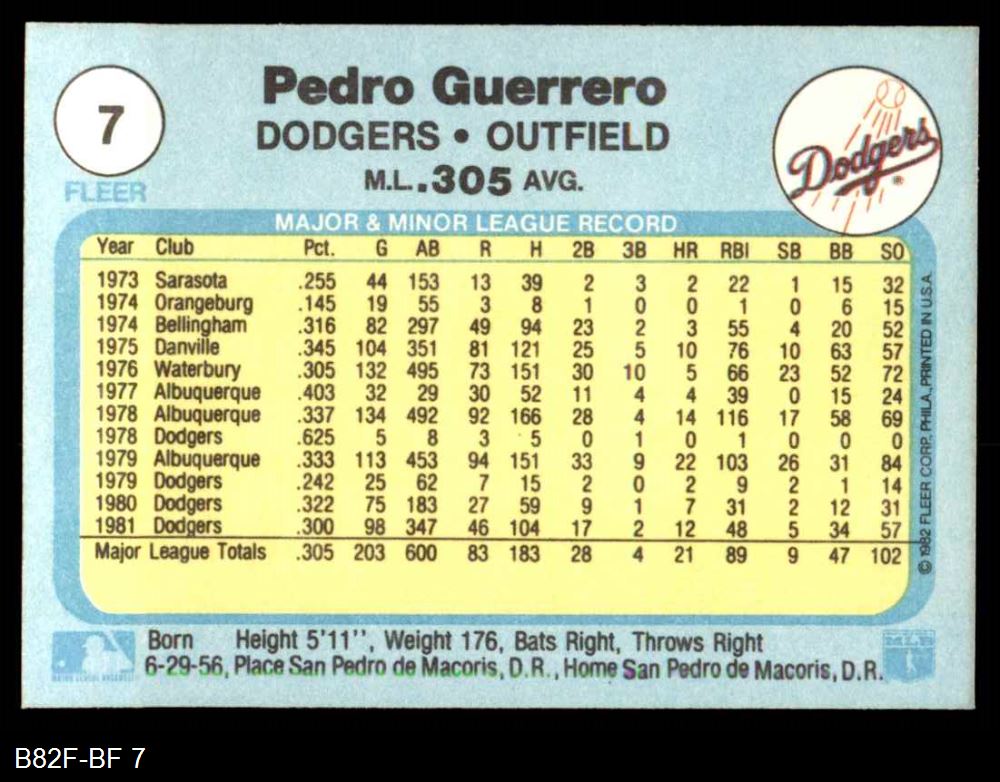 1982 Fleer #7 Pedro Guerrero
