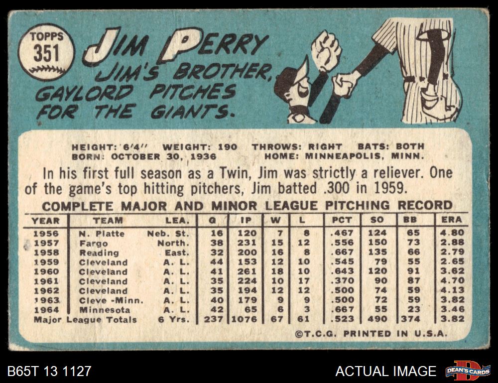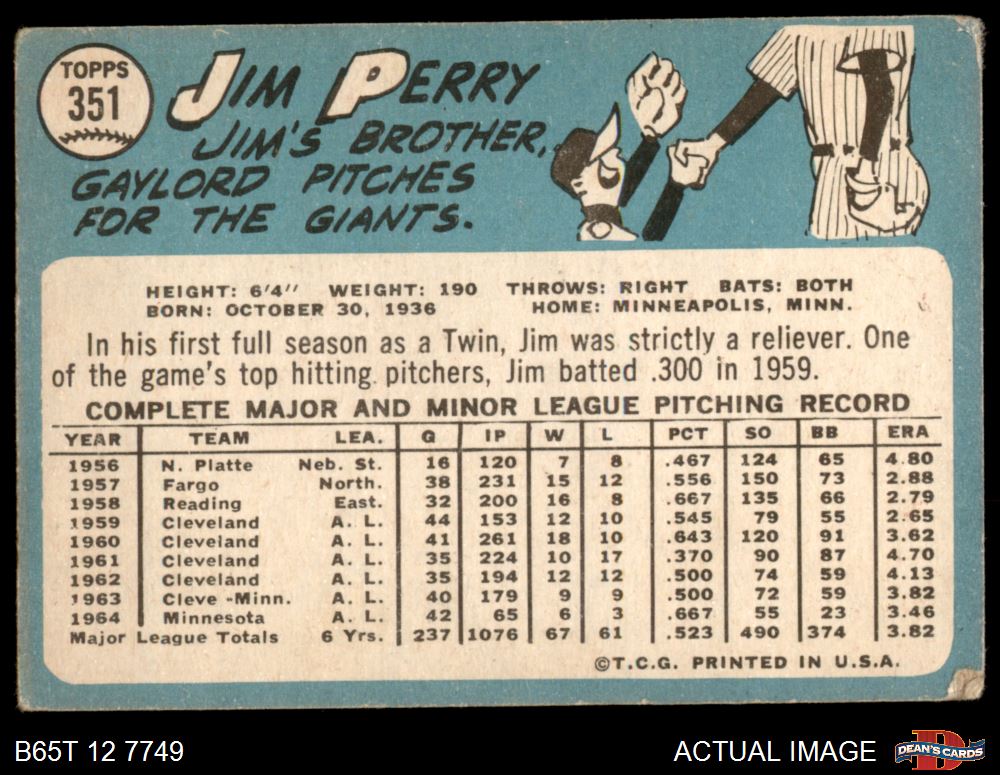 1965 Topps #351 Jim Perry 1.5 - FAIR