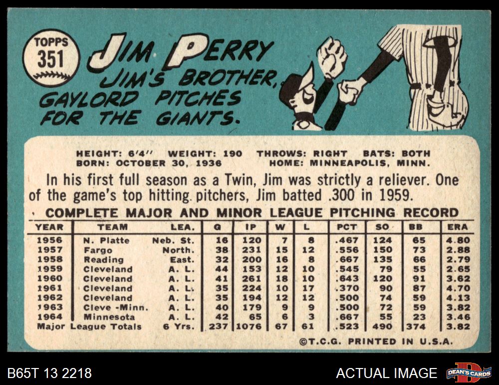 1965 Topps #351 Jim Perry 4 - VG/EX