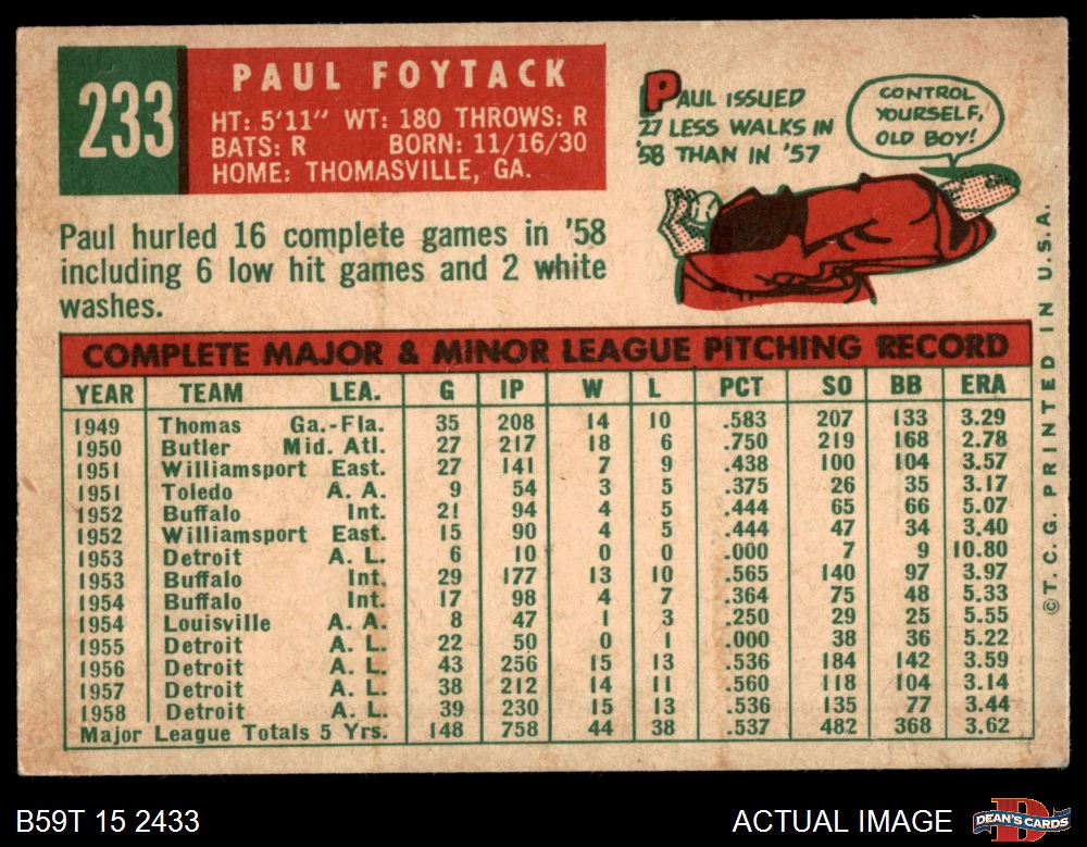 1959 Topps #233 Paul Foytack 3 - VG