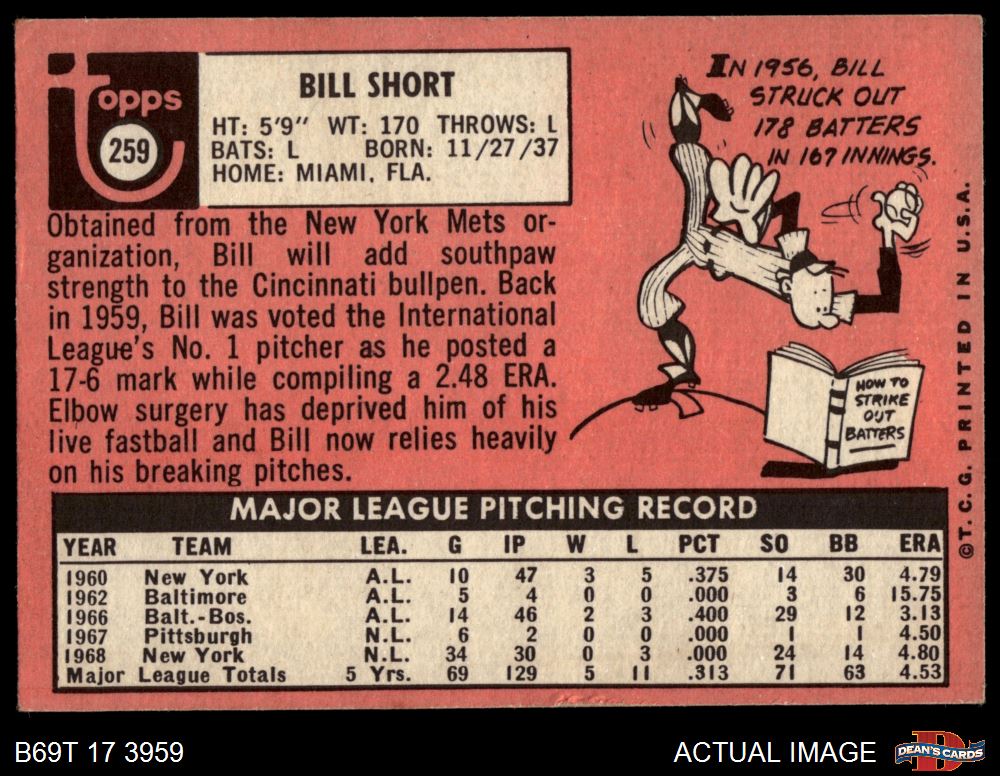 1969 Topps #259 Bill Short 4 - VG/EX