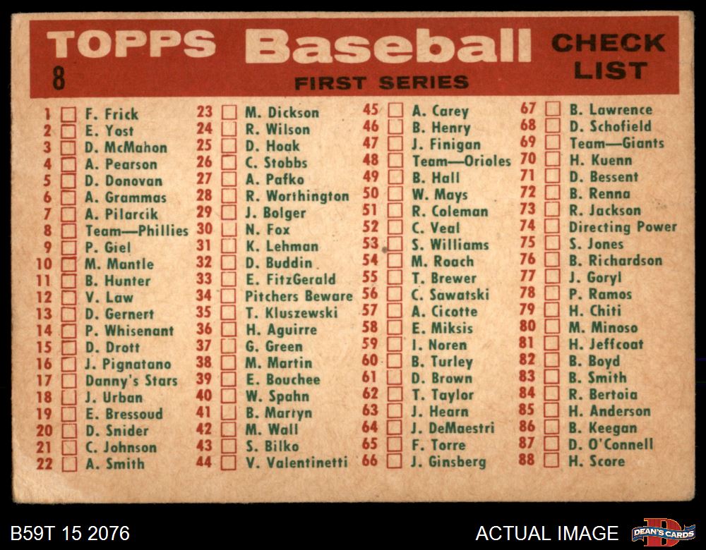 1959 Topps #8 Phillies Team Checklist 3.5 - VG+