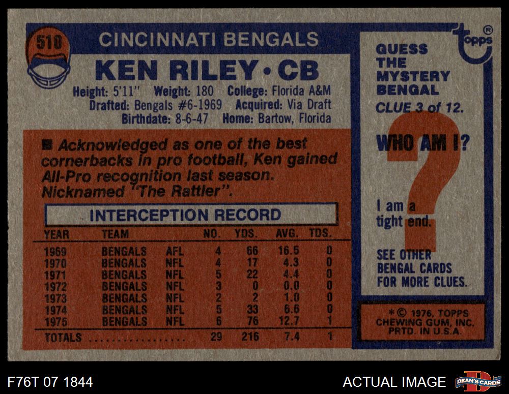 1976 Topps #510 Ken Riley 5.5 - EX+