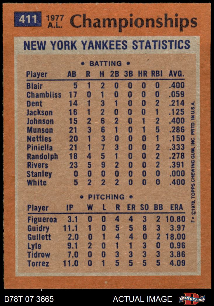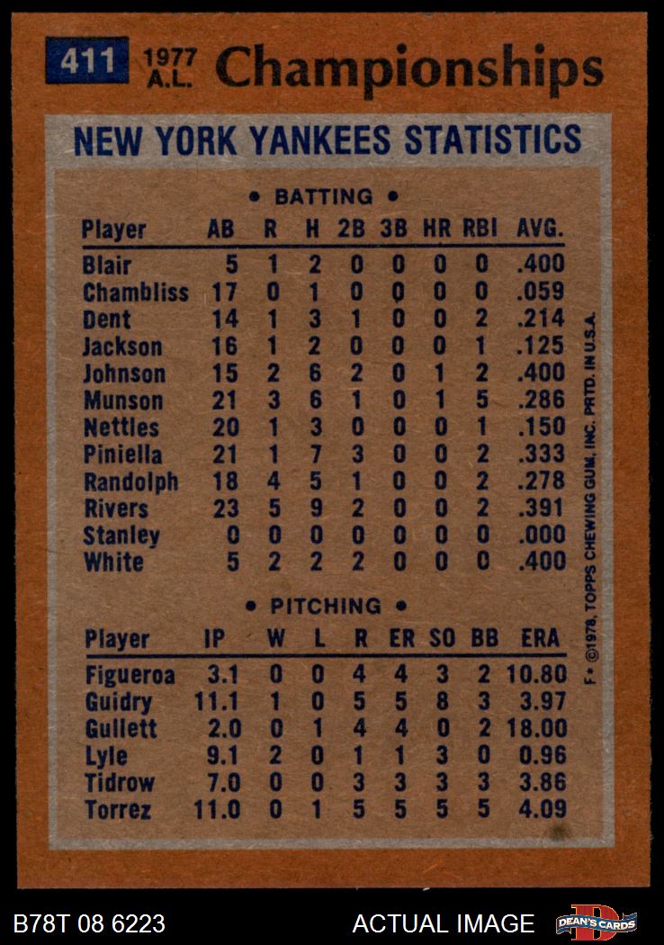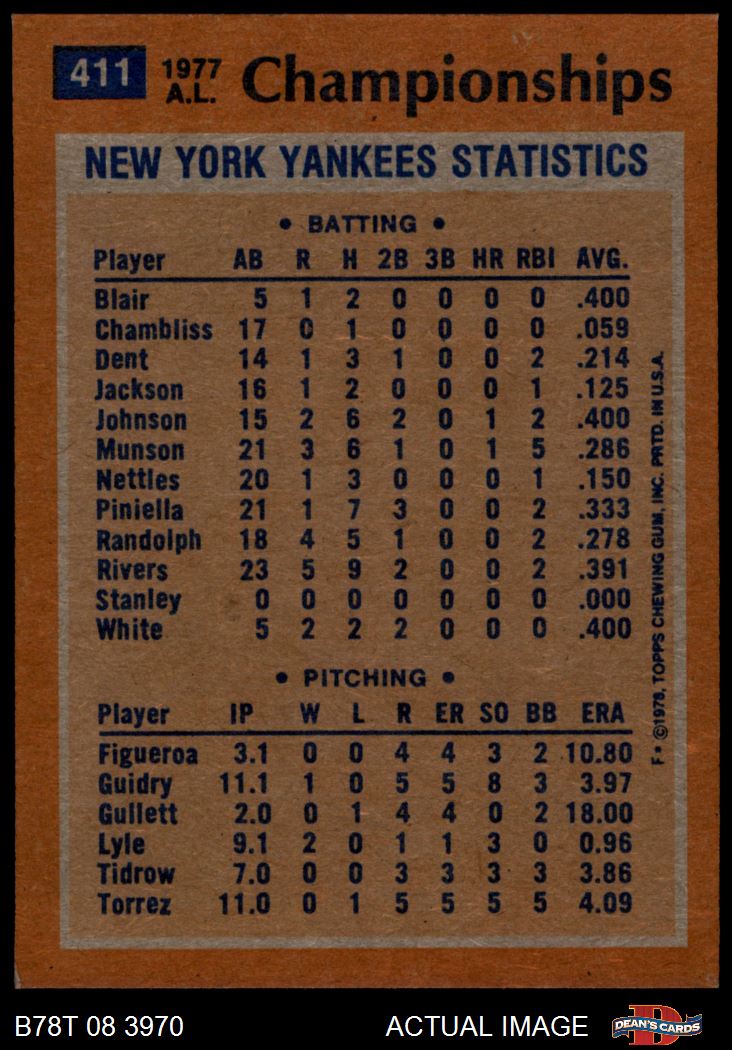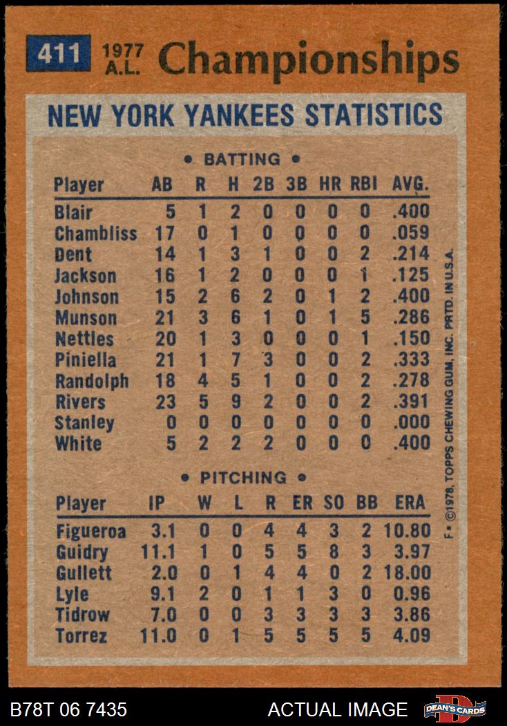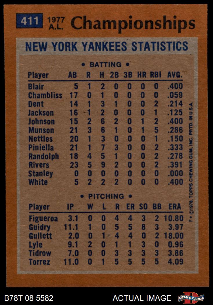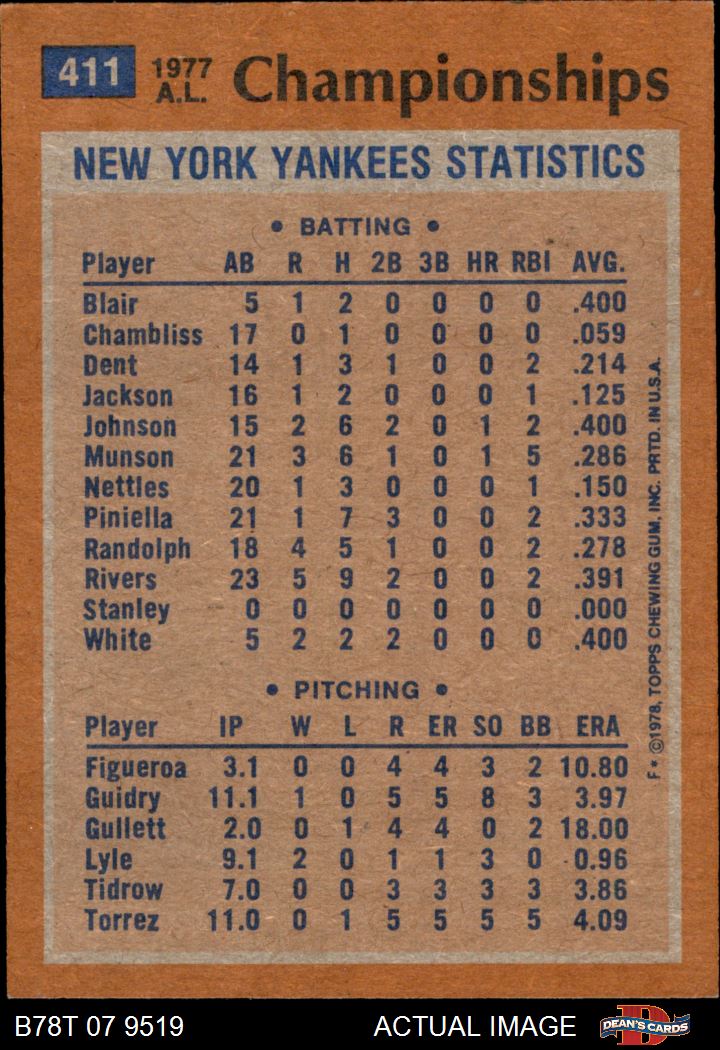 1978 Topps #411 AL Championship - Yankees Rally to Beat Royals