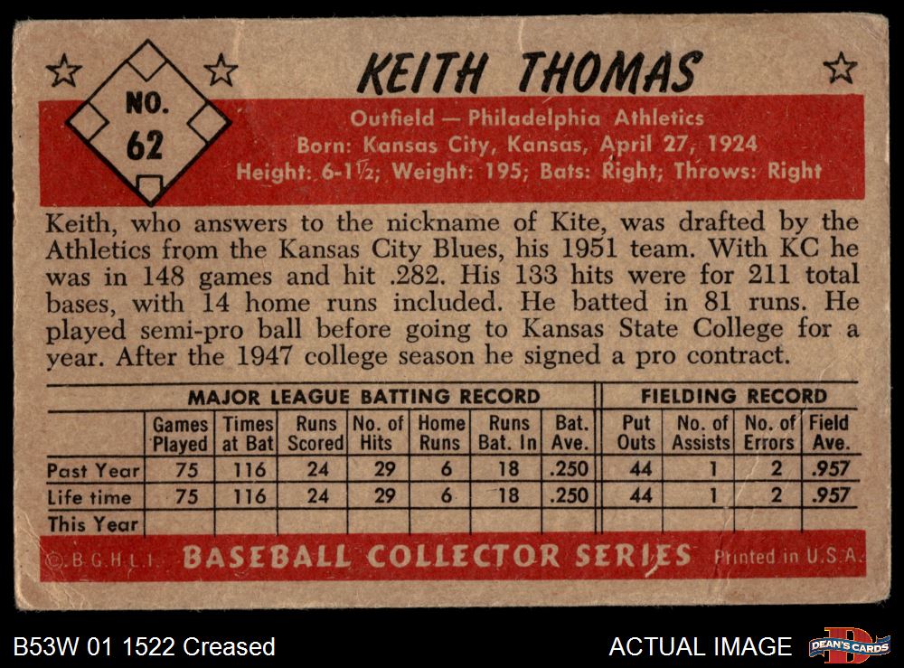 1953 Bowman B&W #62 Keith Thomas Front Thumbnail