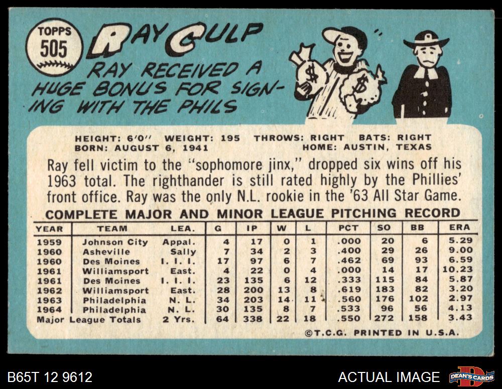 1965 Topps #505 Ray Culp 4.5 - VG/EX+