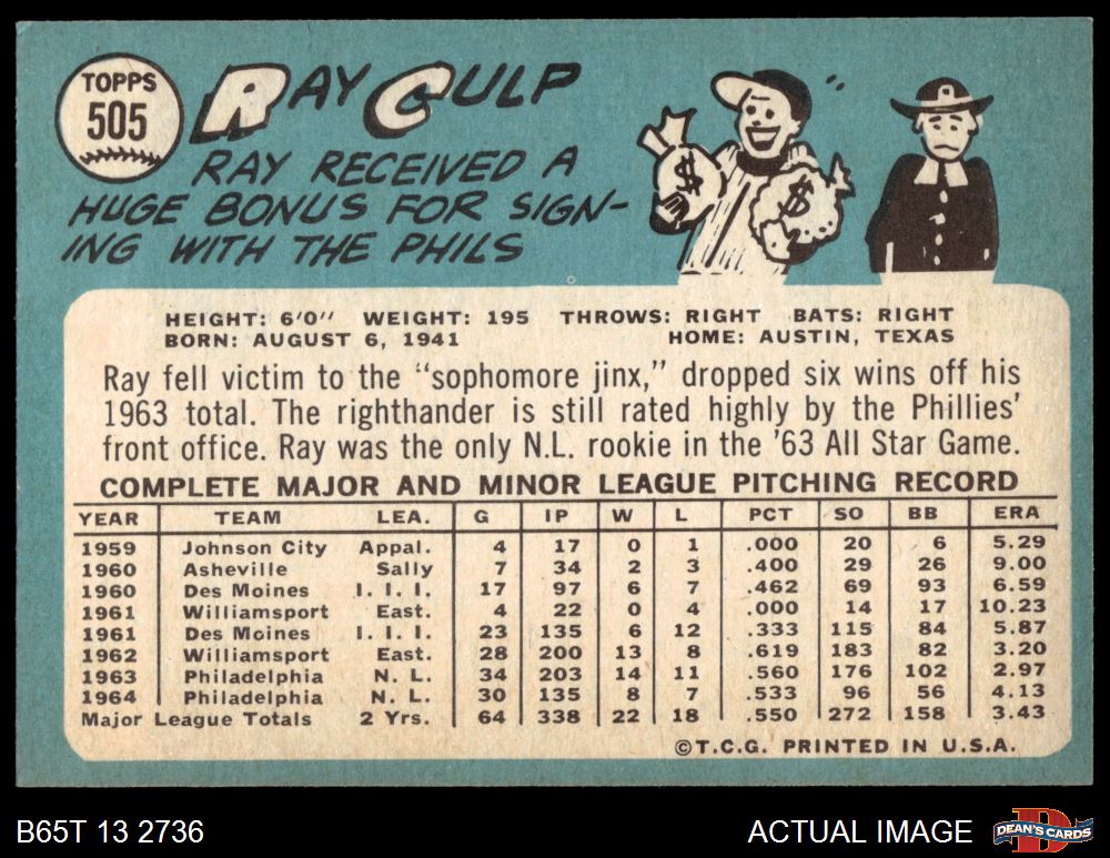 1965 Topps #505 Ray Culp 6 - EX/MT
