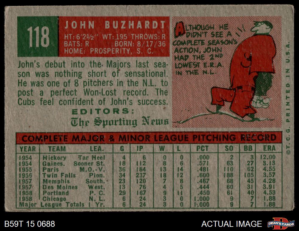 1959 Topps #118 John Buzhardt 3 - VG