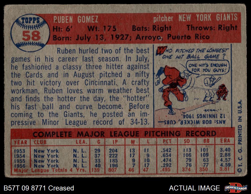 1957 Topps #58 Ruben Gomez