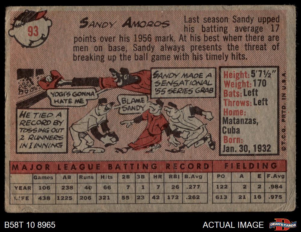 1958 Topps #93 Sandy Amoros AUTHENTIC
