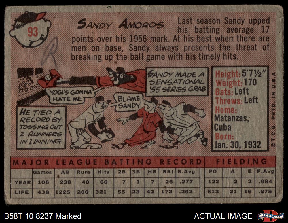 1958 Topps #93 Sandy Amoros 1 - POOR
