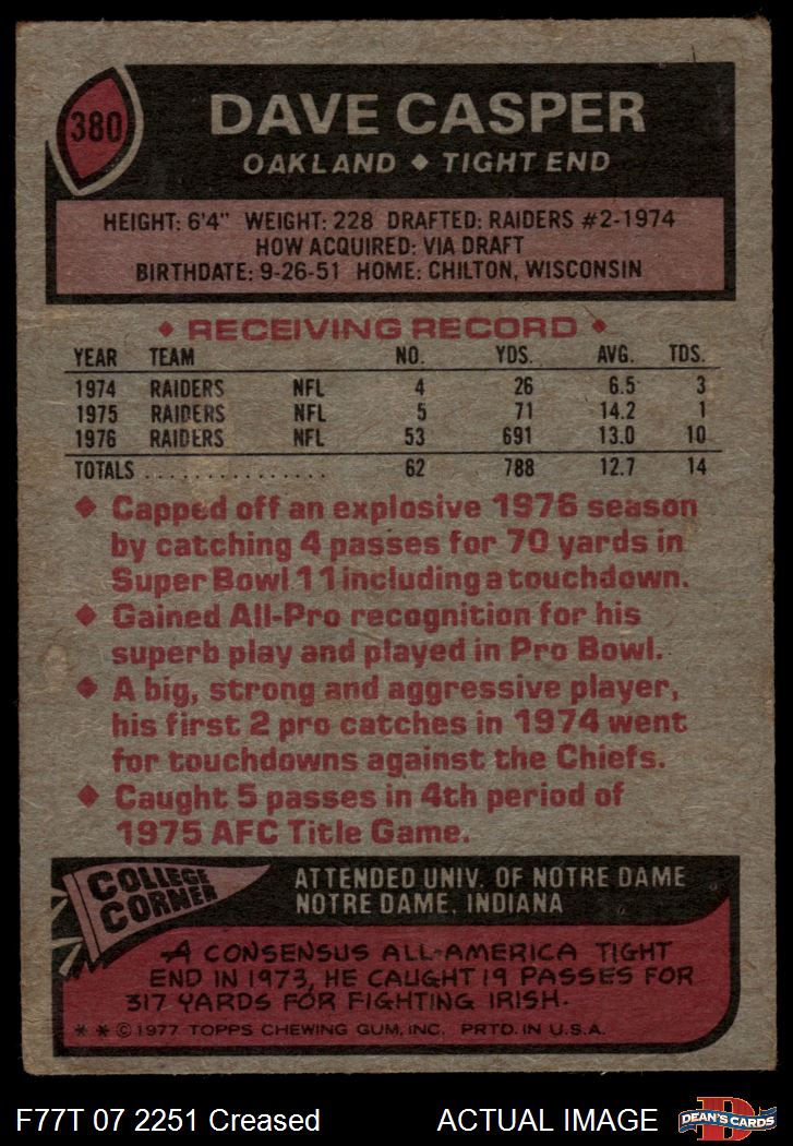 1977 Topps #380 Dave Casper 1 - POOR