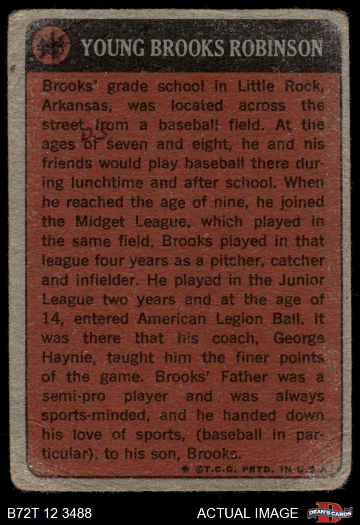 1972 Topps #498 - Brooks Robinson Boyhood Photo AUTHENTIC
