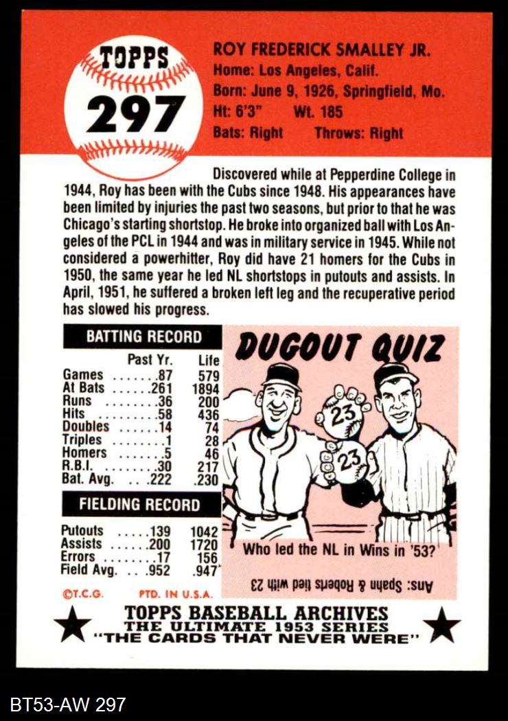 1953 Topps Archives #297 Roy Smalley 8 - NM/MT
