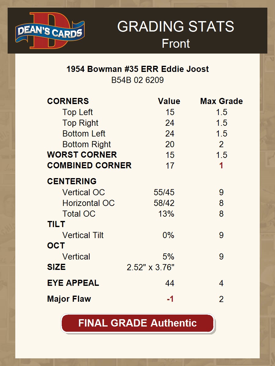 1954 Bowman #35 ERR Eddie Joost AUTHENTIC