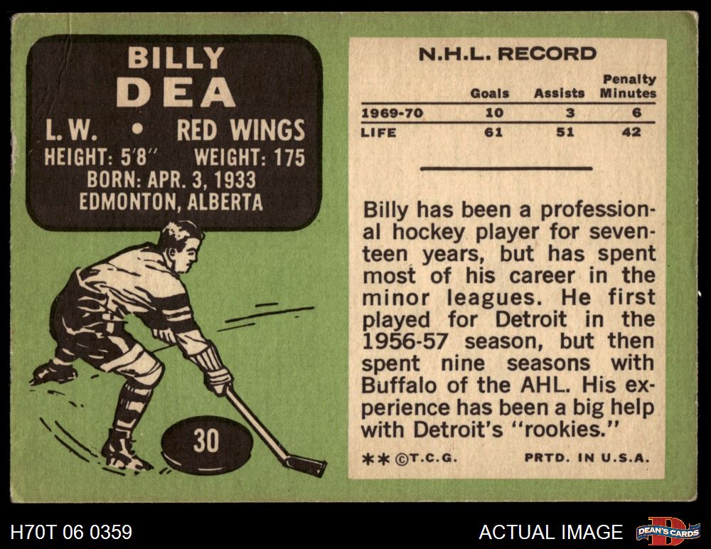 1970 Topps #30 Billy Dea 2 - GOOD
