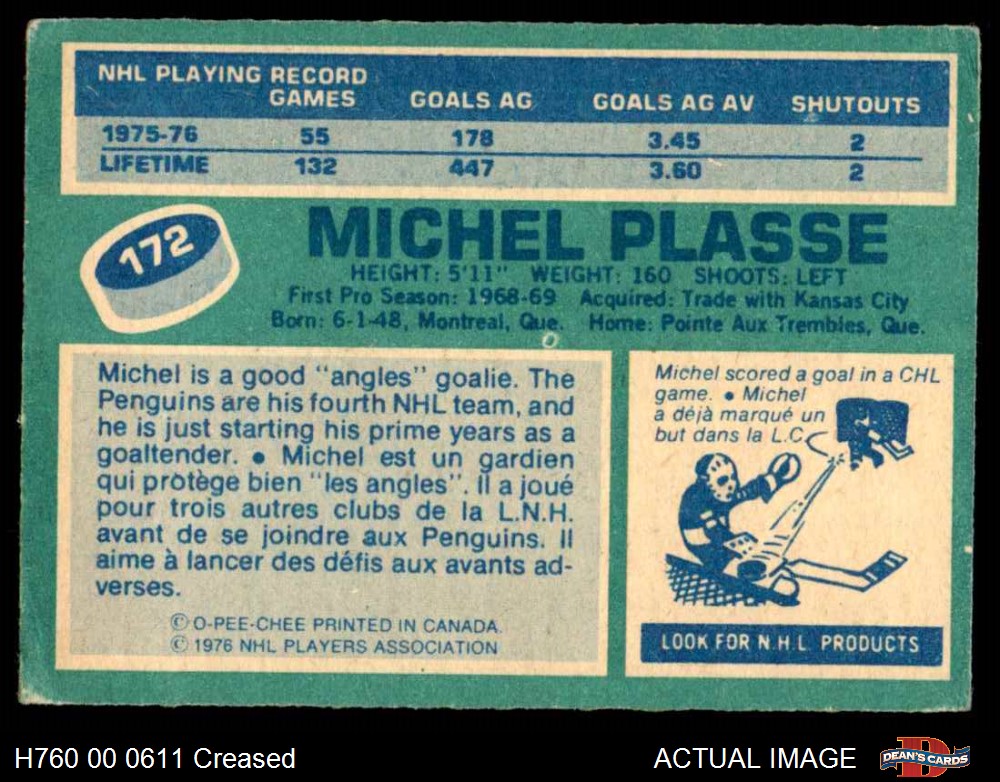 1976 O-Pee-Chee NHL #172 Michel Plasse