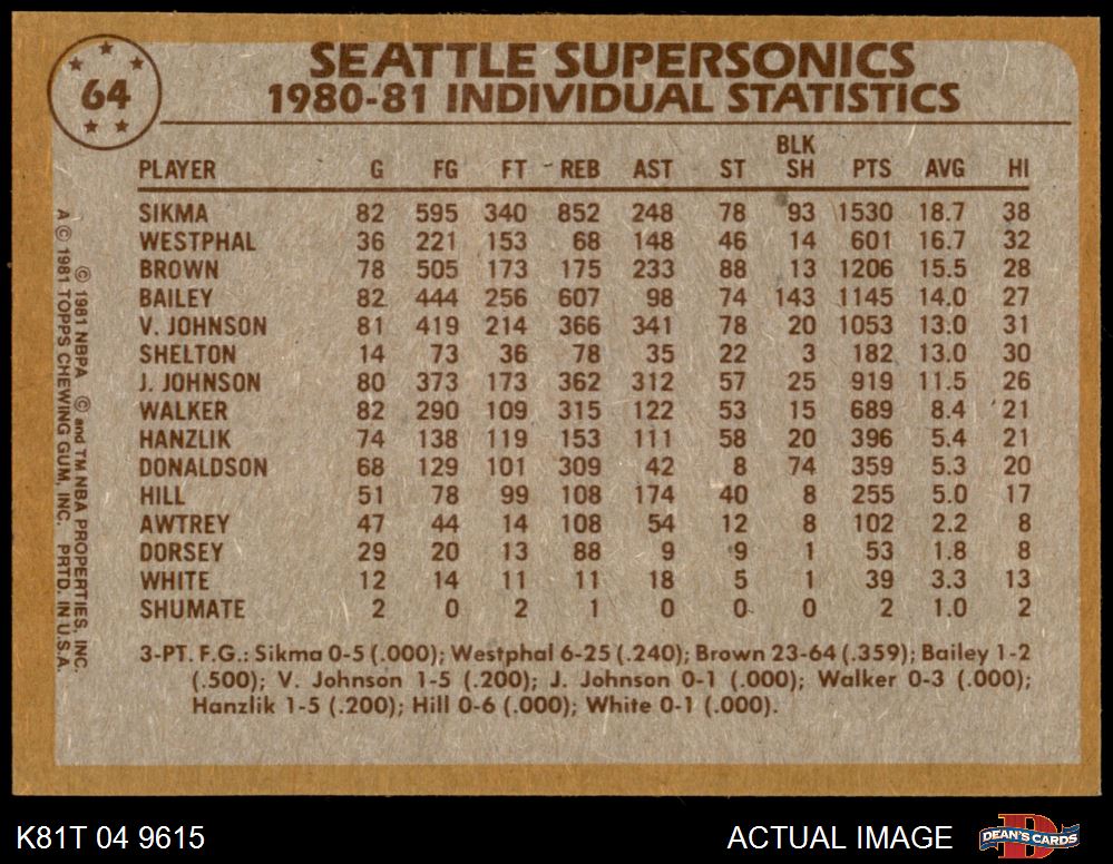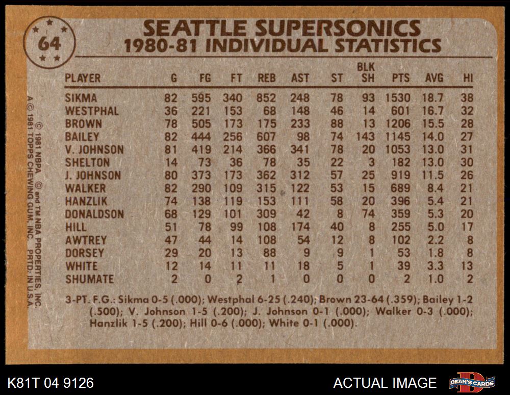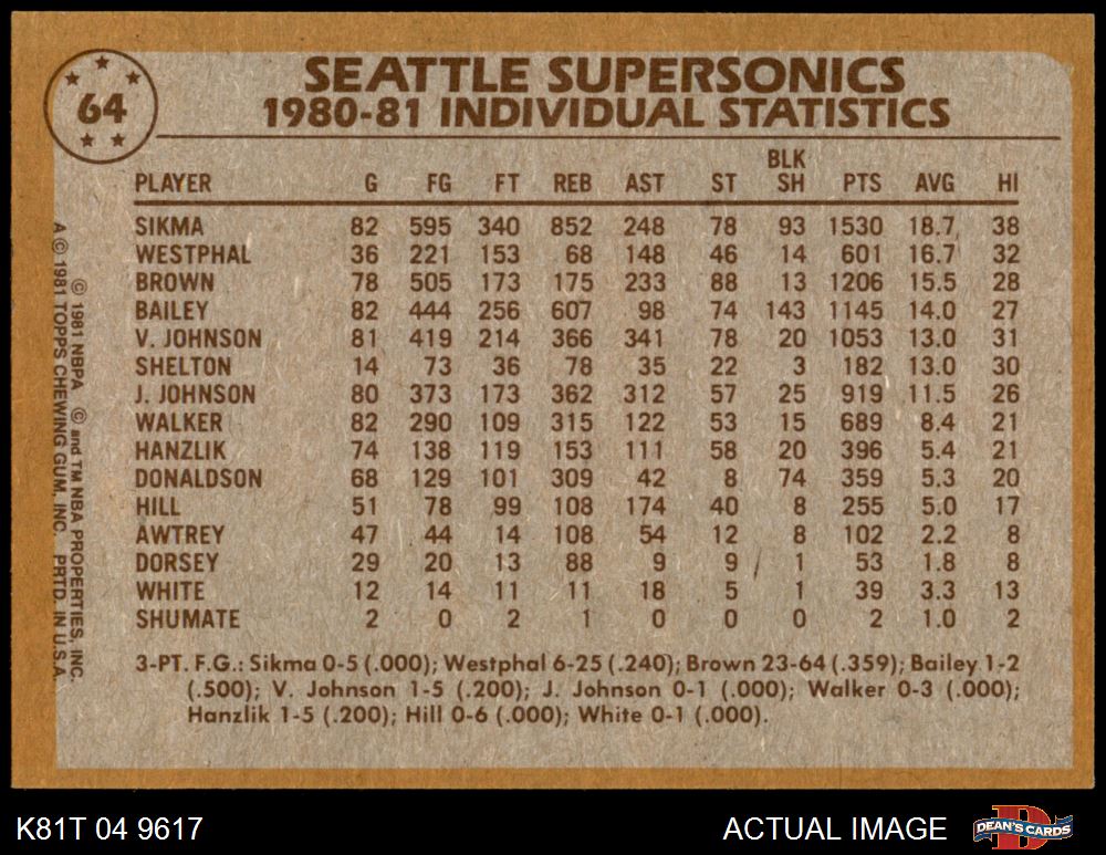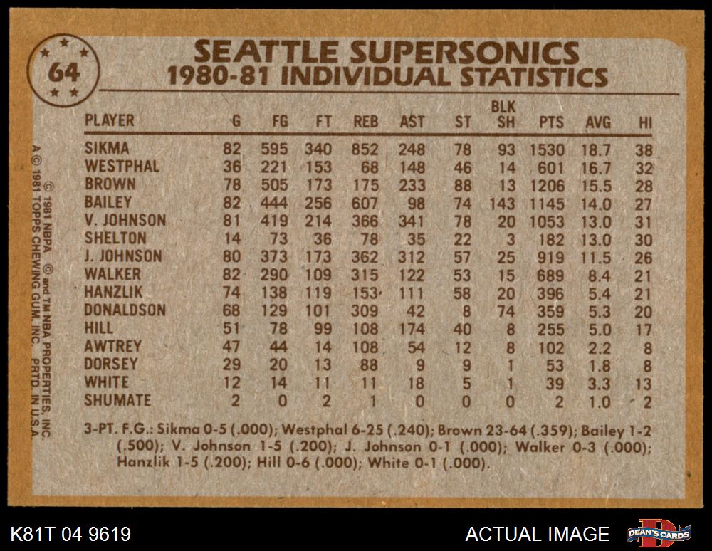 1981 Topps #64 Sonics Leaders