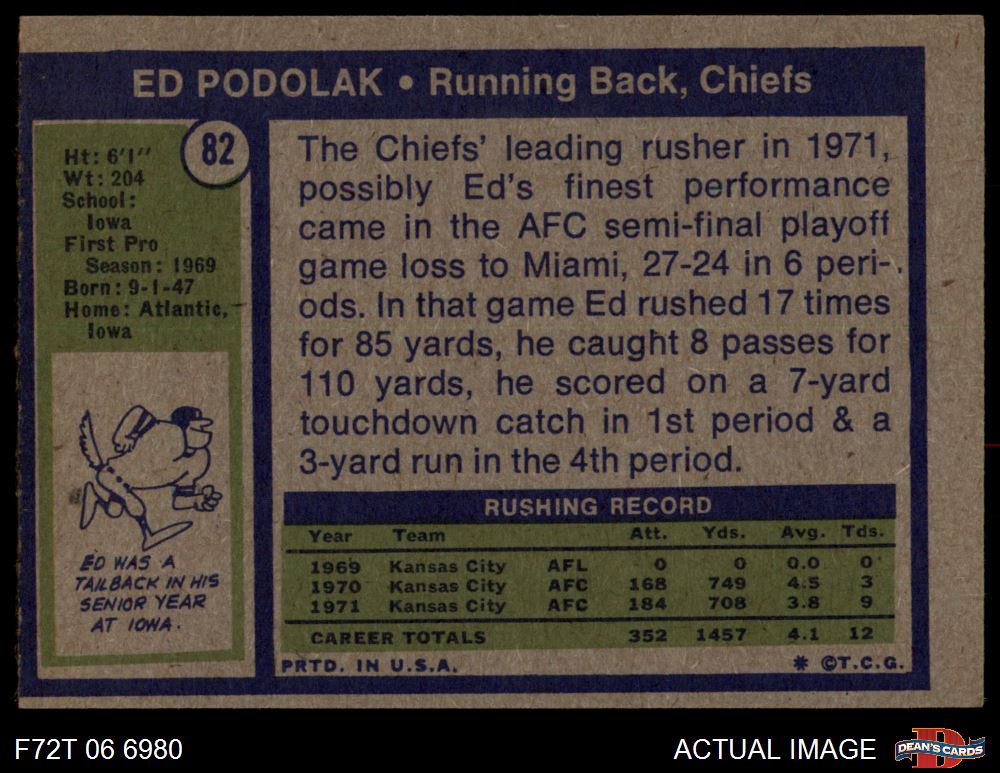 1972 Topps #82 Ed Podolak 2 - GOOD