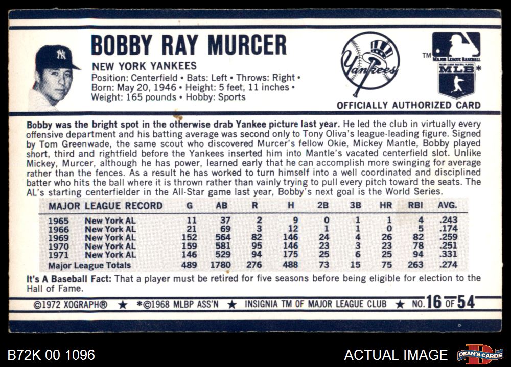1972 Kellogg's #16 Bobby Murcer