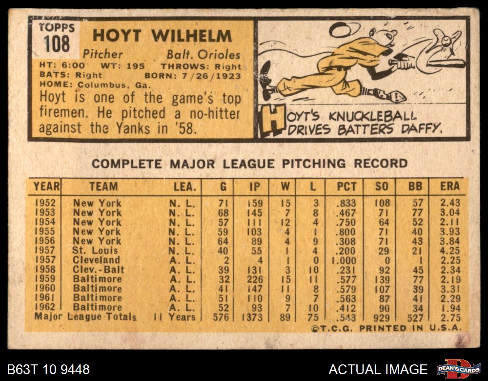 1963 Topps #108 Hoyt Wilhelm 1 - POOR
