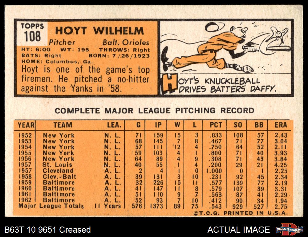 1963 Topps #108 Hoyt Wilhelm 2 - GOOD