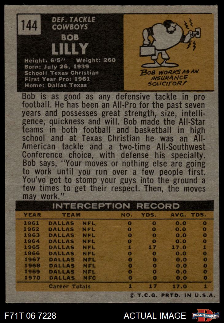 1971 Topps #144 Bob Lilly 5 - EX