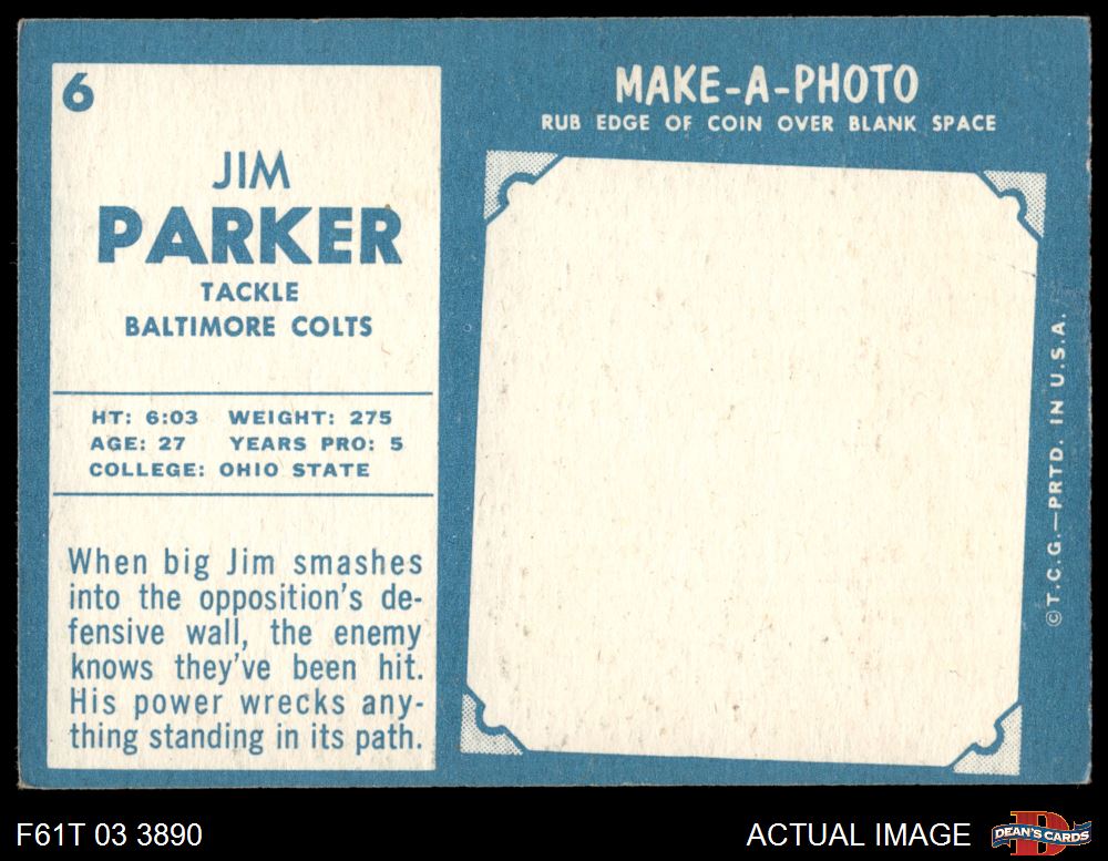 1961 Topps #6 Jim Parker 3 - VG