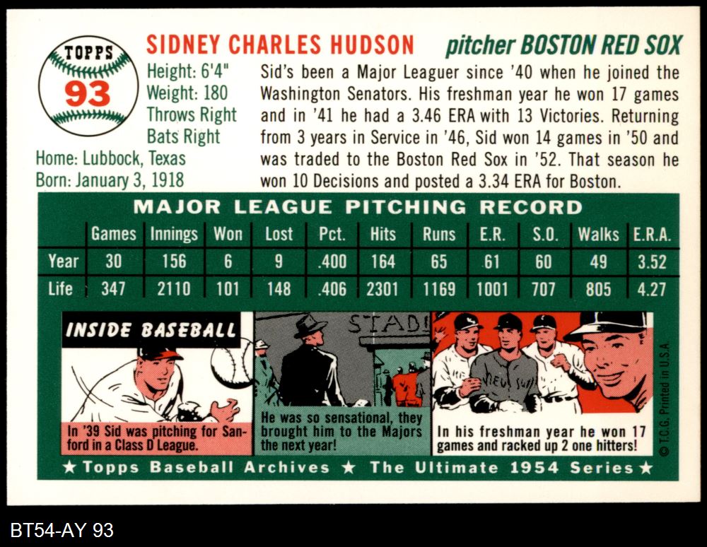 1954 Topps Archives #93 Sid Hudson