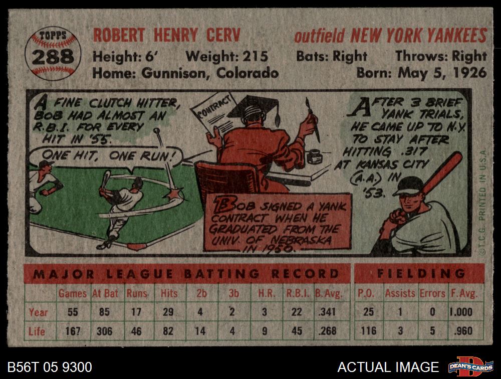 1956 Topps #288 Bob Cerv 2 - GOOD